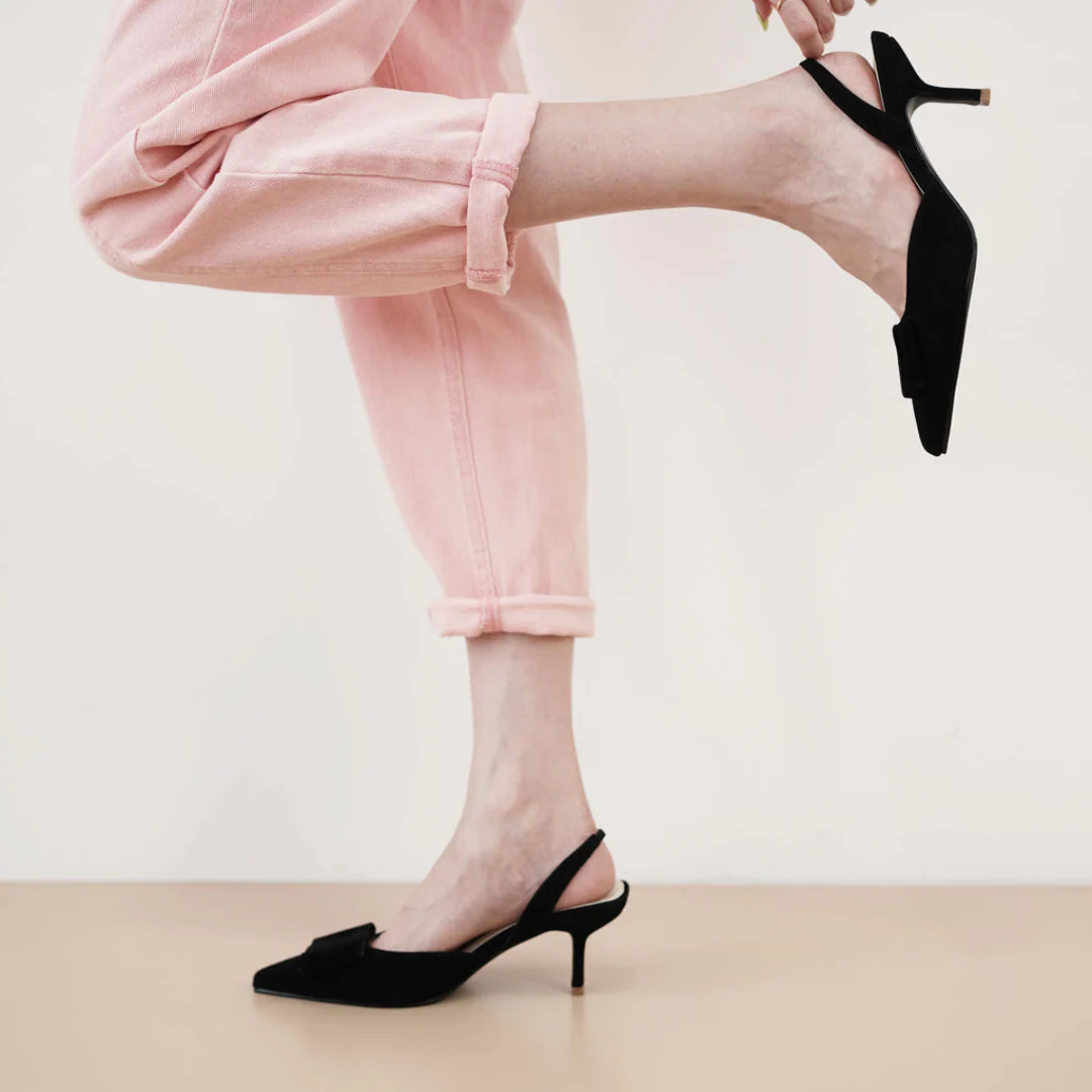 Refined elegance meets modern charm with the Valentina Pump. Crafted in an elegant velvet finish, this graceful silhouette features a sleek pointed toe with a statement front bow and a secure slingback strap for comfortable wear. The 2-inch heel offers subtle lift with balanced support, making it perfect for both day and evening styling. Designed to elevate your look with understated luxury, Valentina Pump adds a polished touch to every step.